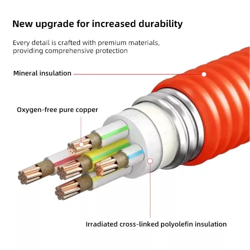 يستخدم الكابل المعزول المعدني المقاوم للحريق العزل المعدني غير العضوي للحفاظ على سلامة العزل على المدى الطويل حتى في الحرائق التي تزيد عن 1000 درجة مئوية، مما يضمن التدفق المستمر للدوائر الحيوية مثل مضخات الحريق، ومراوح العادم، وإضاءة الطوارئ، وما إلى ذلك.